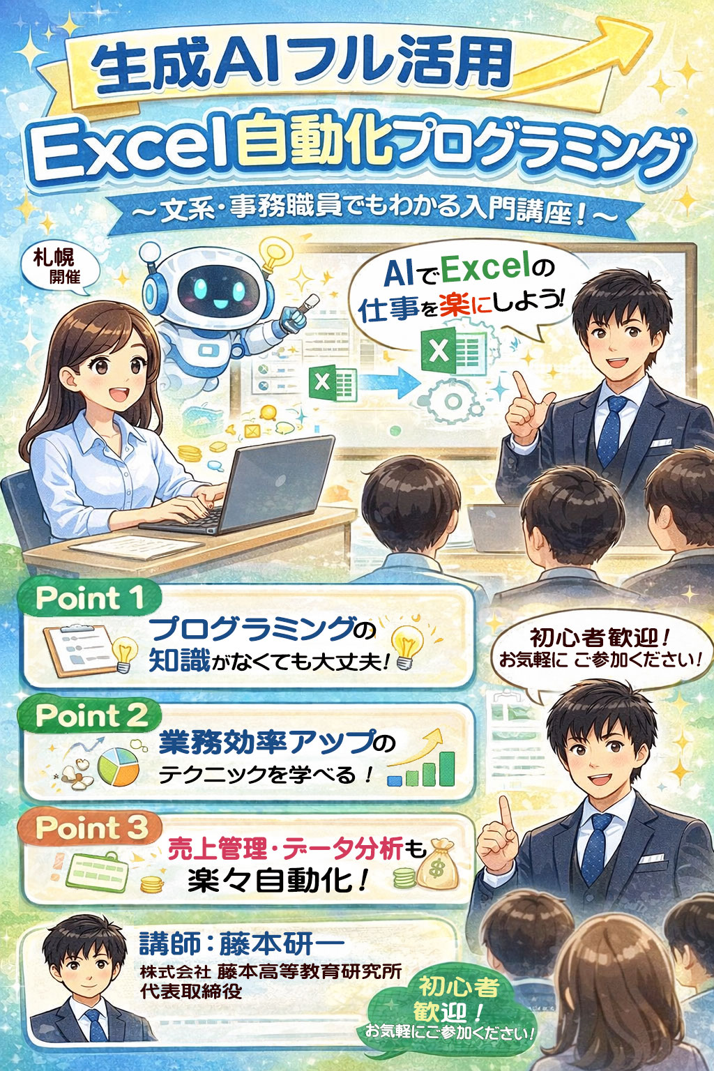 ・Excelがインストールされているノートパソコンをご持参下さい